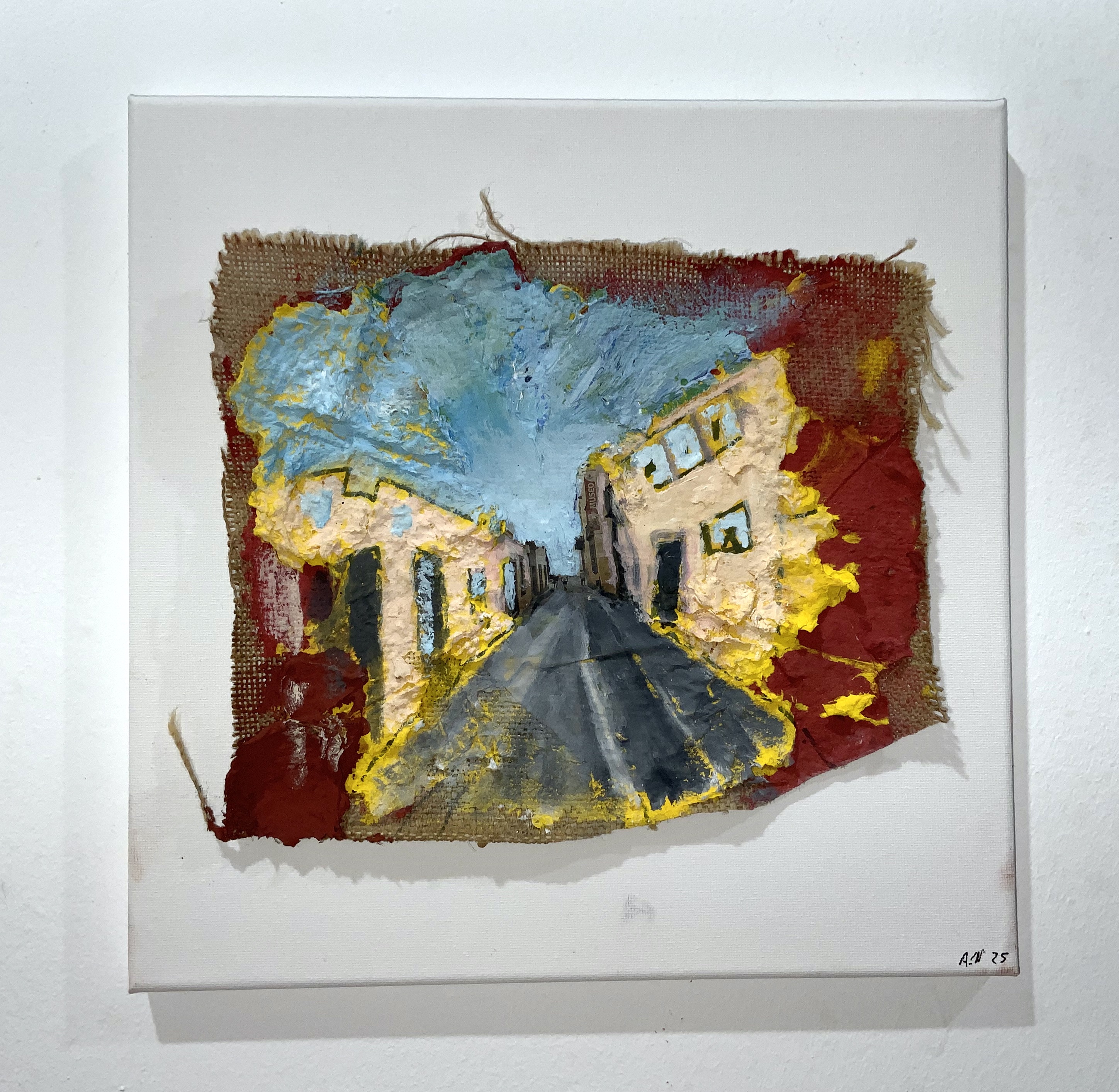 La exposición consta de 21 obras de pequeño y mediano formato, la ha llamado, la continuación de los lugares en los que vivo » donde partiendo de imágenes digitales previamente trabajadas las funde en cuadros con pintura, pigmentos, lápiz etc confundiendo, y creando a partir de una imagen realista una entrada a otros mundos, a otros deseos.